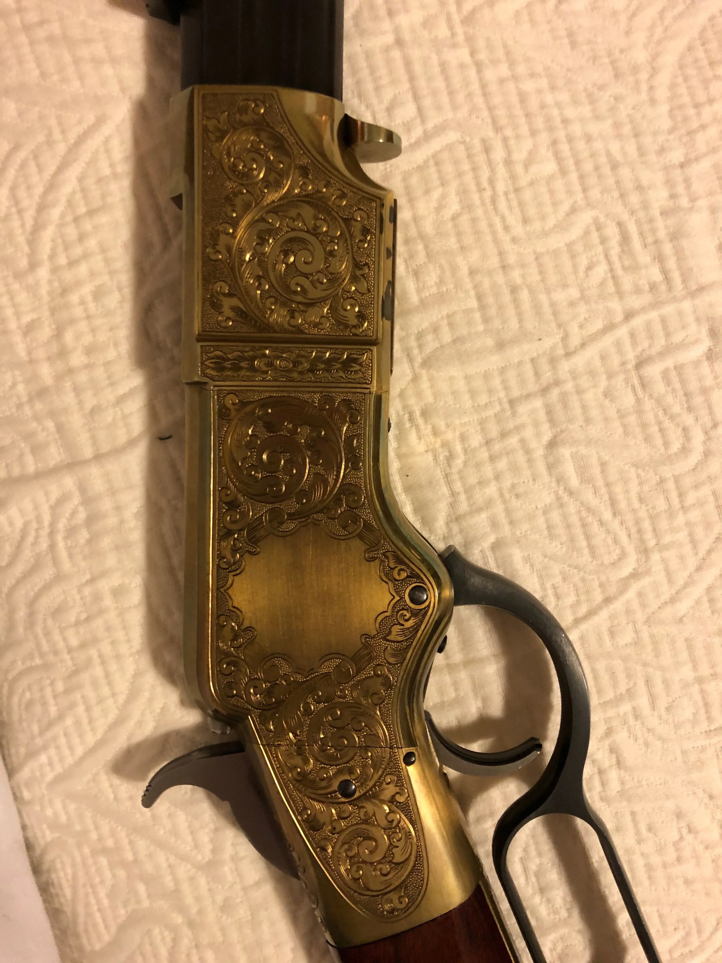 I had a good friend who lived in Nome who had a small gunshop there (two shipping containers welded together side by side with the center walls cut out). Slim recommended me to his friend, who then commissioned me to engrave the Henrys. They weren’t done at the same time, so there would be a few more minor differences.